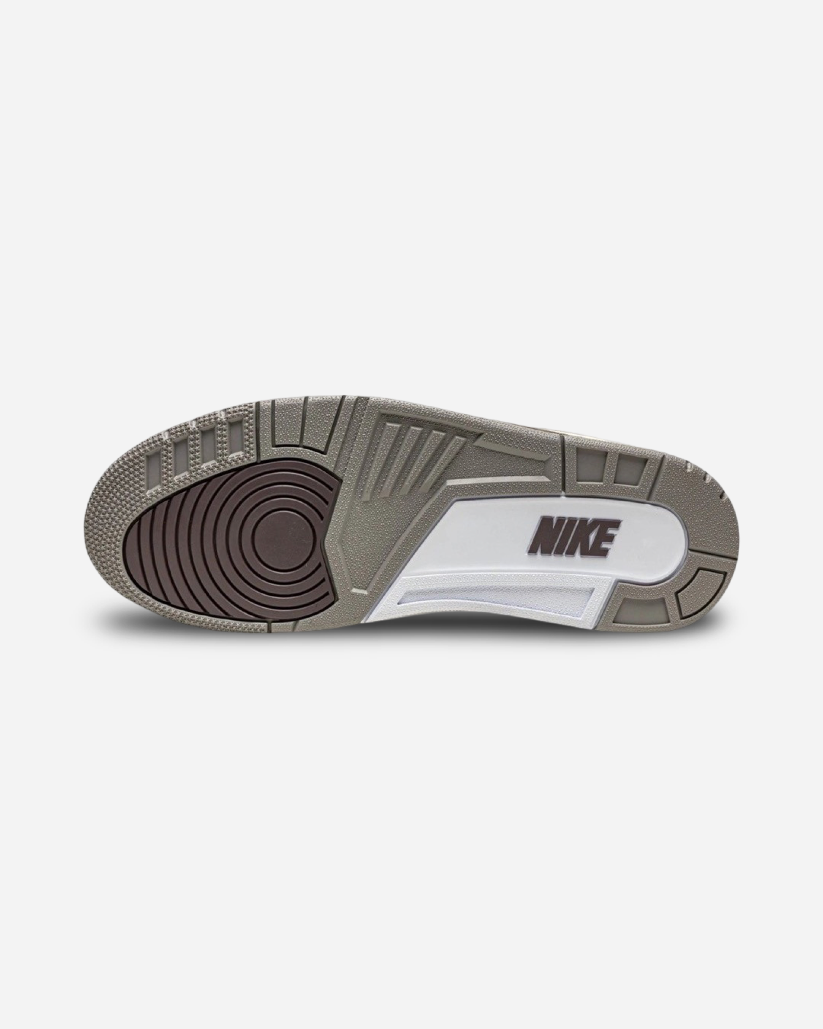 The A Ma Maniére x women's Air Jordan 3 Retro SP ‘Raised By Women’ treats the iconic silhouette to a premium makeover. The Atlanta-based retailer dresses the mid-top in tumbled white leather, overlaid with soft grey suede at the collar, eyestay, heel and toe. Mismatched Jumpman and A Ma Maniére branding is embroidered on each tongue, featuring a quilted lining that’s repeated on the interior collar. A subtle cream hue is applied to the molded heel panel, decorated with an embossed Nike Air logo, and polyurethane midsole. Violet-coloured detailing wraps around the heel, providing a contrasting pop of colour.