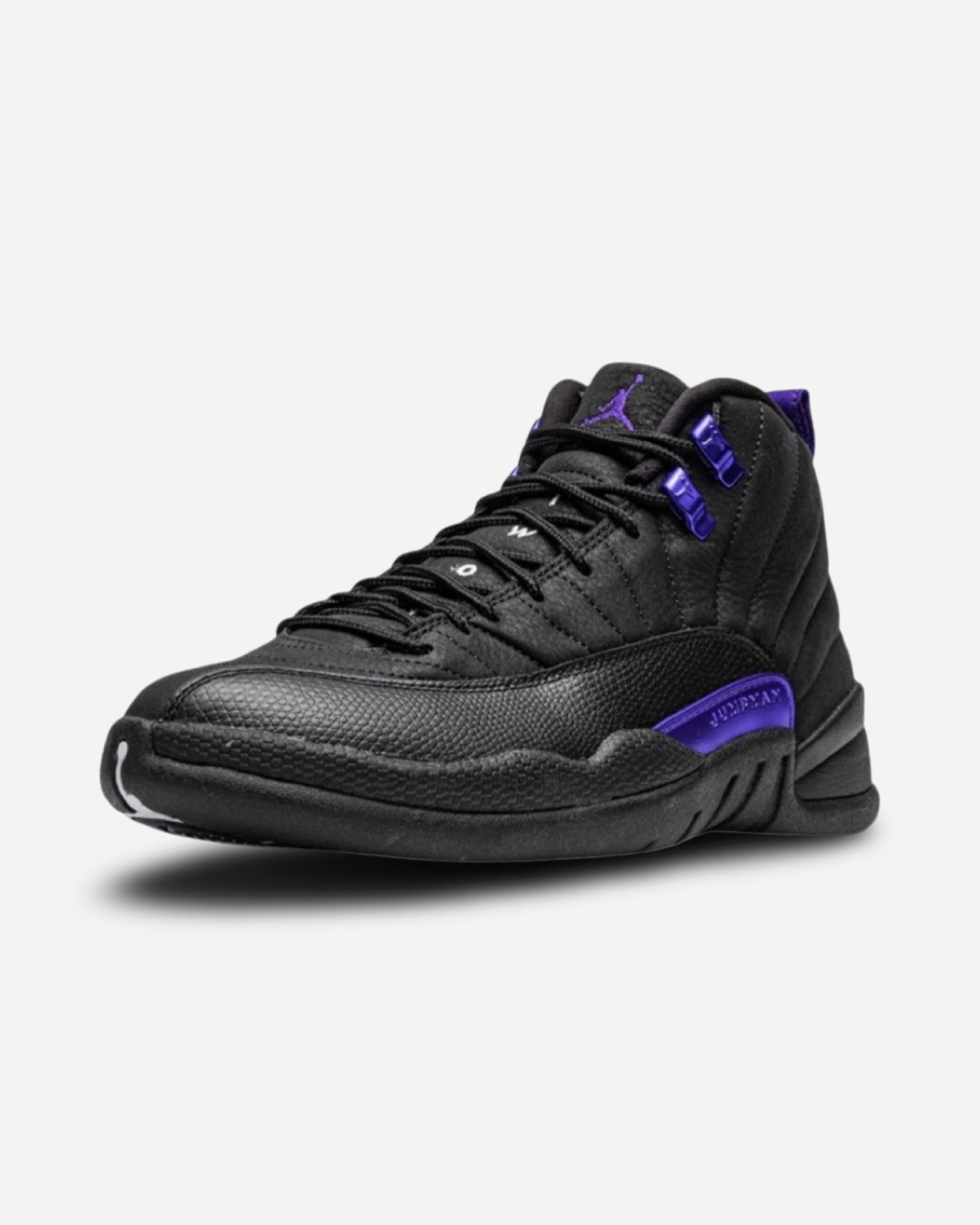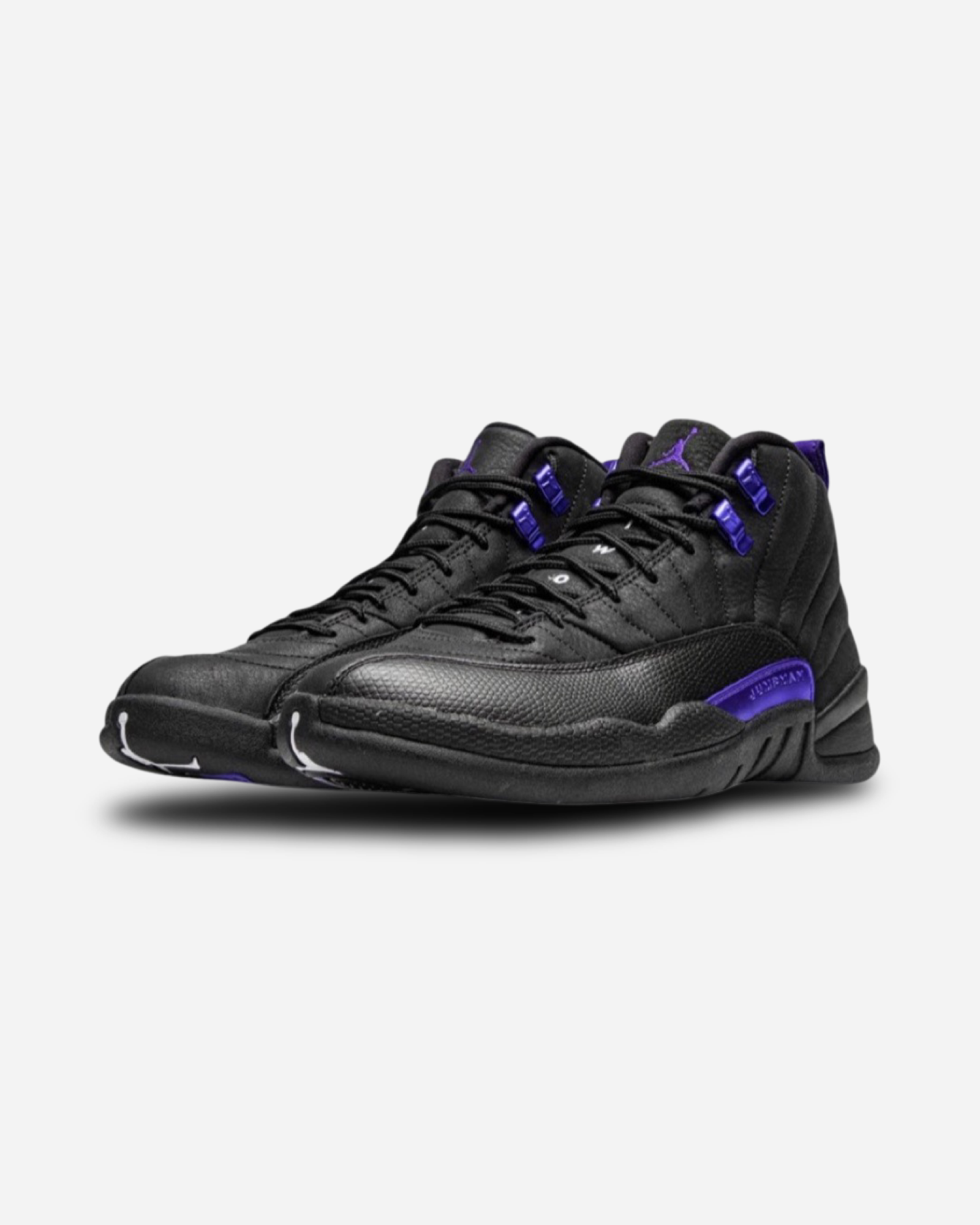 The Air Jordan 12 Retro ‘Dark Concord’ showcases classic colour blocking with bold Dark Concord accents on the sneaker’s Jumpman designation on the side profile along with the metallic lace loops. The rest of the upper is constructed from stitched black suede and an embroidered Jumpman branding atop the tongue.