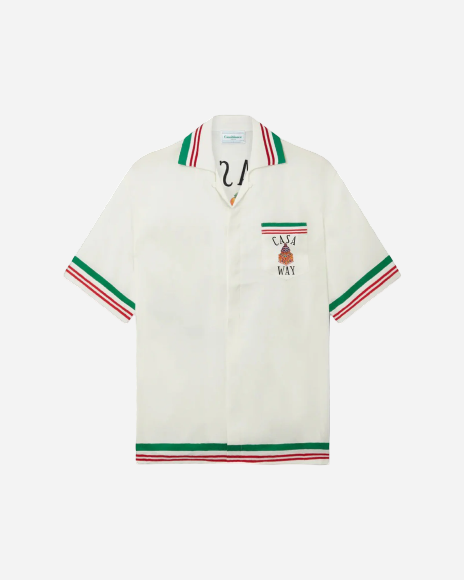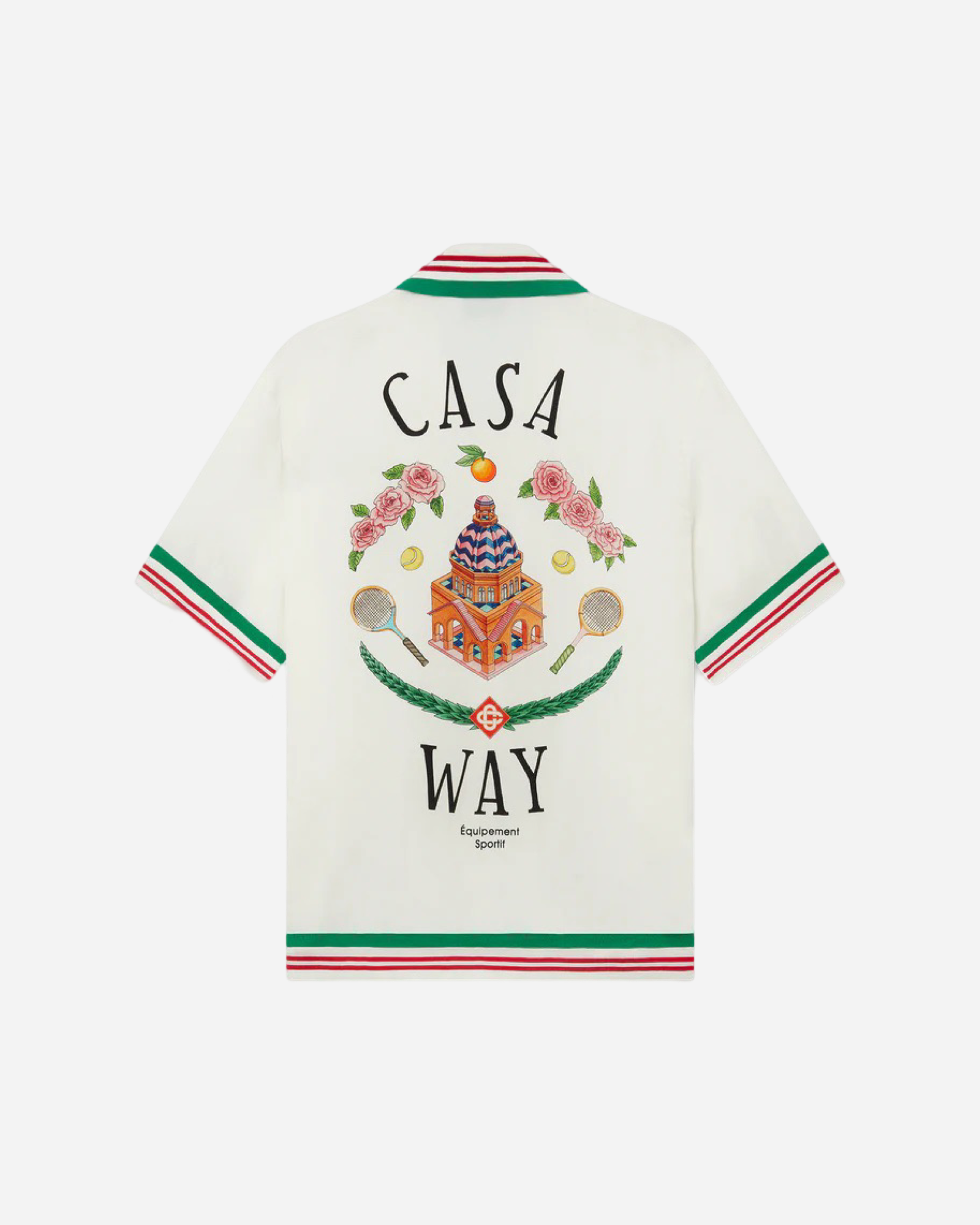 The Casa Way knitted collar silk shirt features the house's signature artwork with screen-printed illustrations of sporting equipment and floral details reinterpreted for this season. Crafted from our signature monogram printed silk fabric with a contrast cotton collar designed for a classic fit.