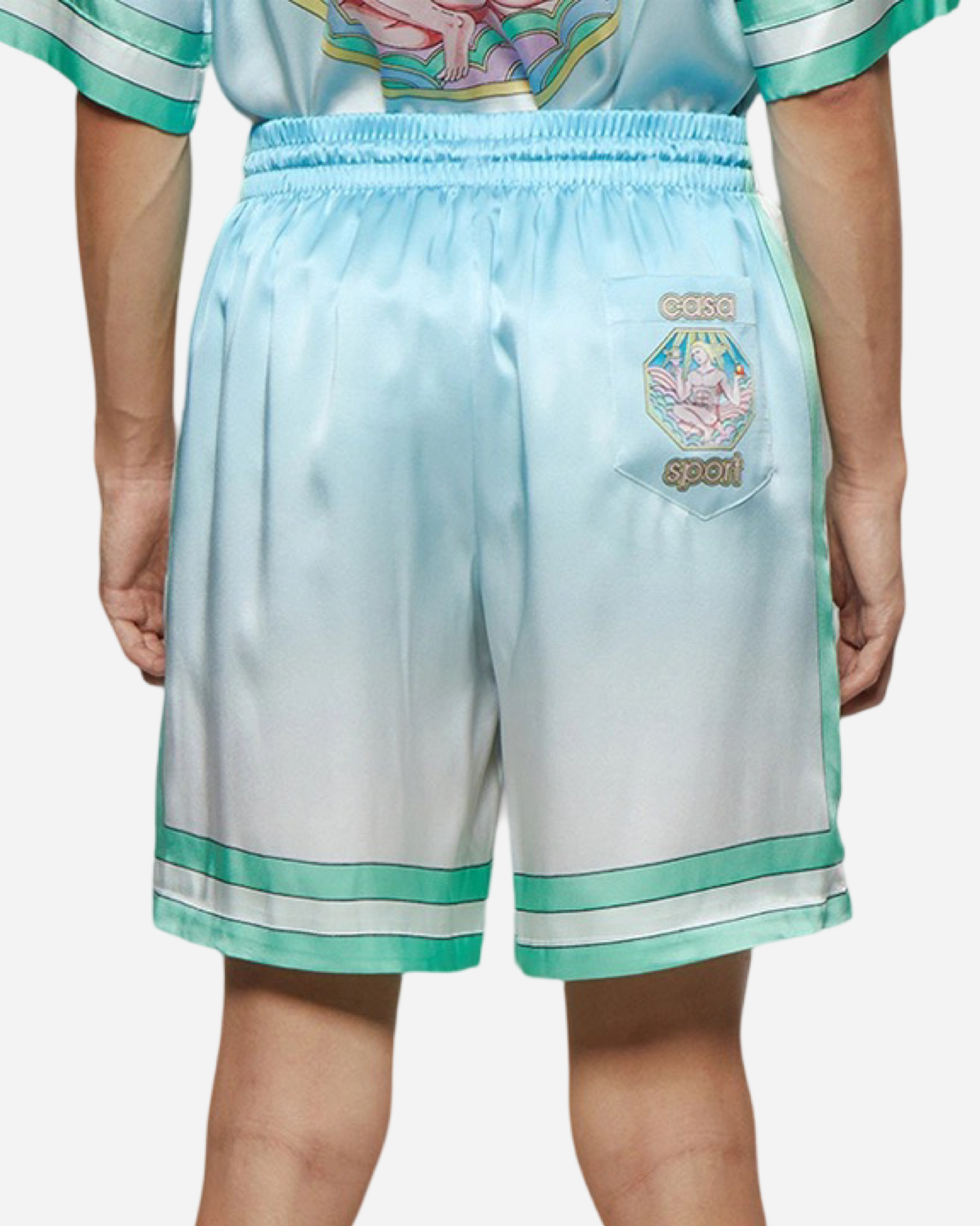 Relaxed silhouette.Elasticized waistband.Dual adjustable drawstrings.Dual slit pockets.Colorful print throughout