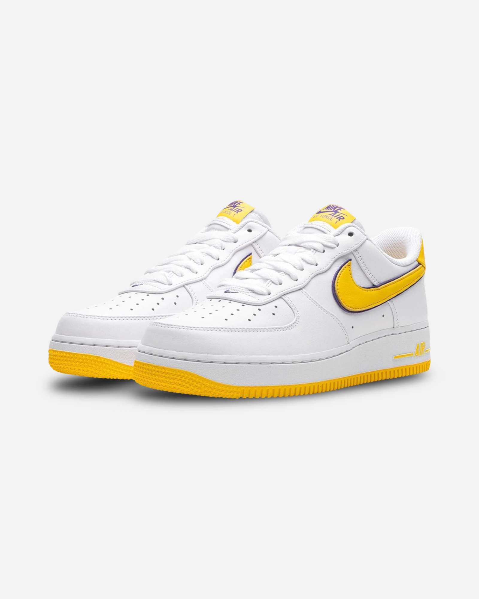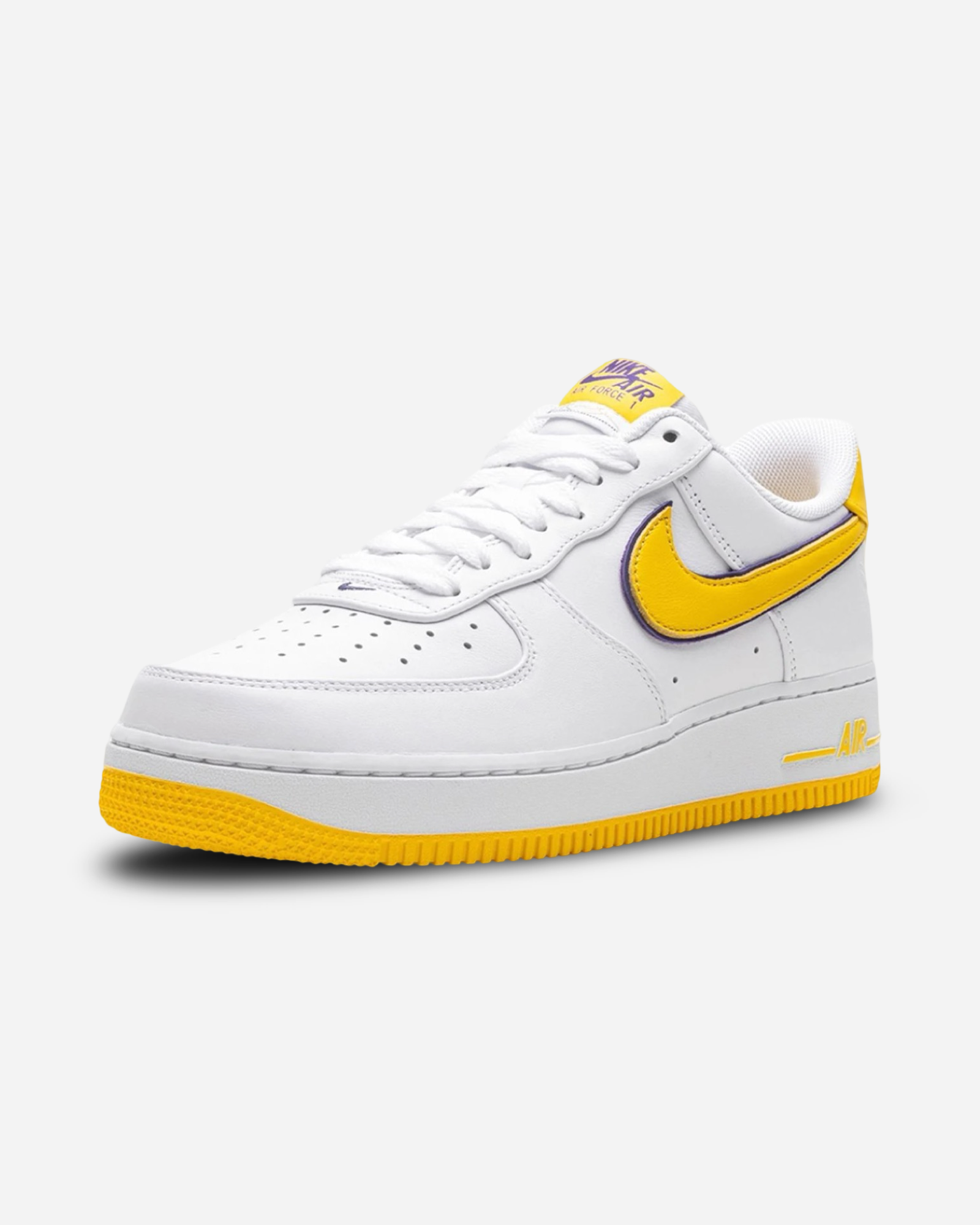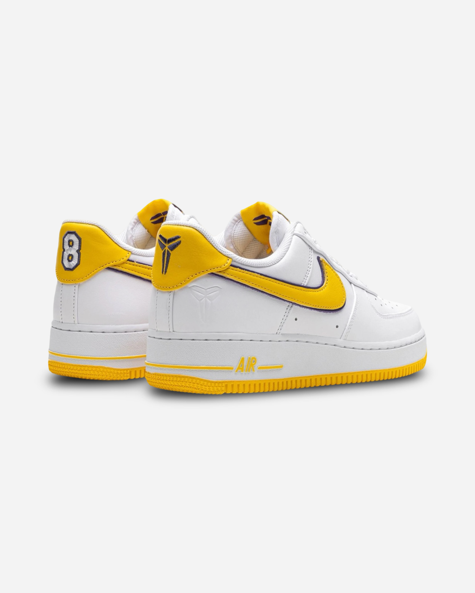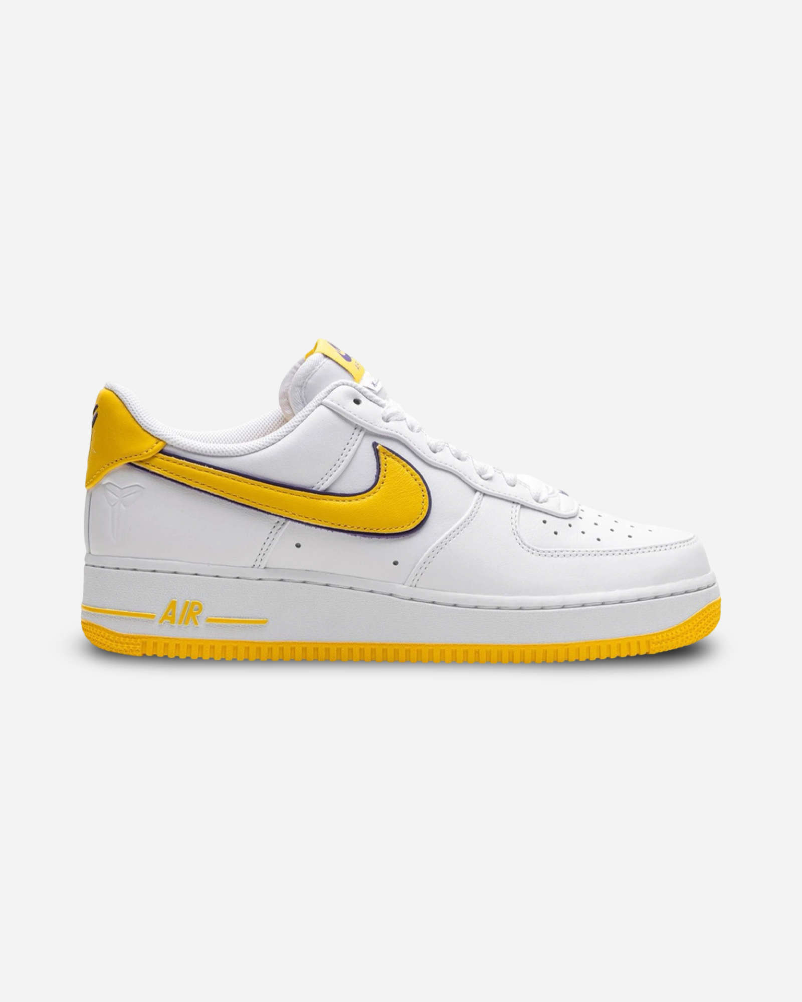 The Nike Air Force 1 Low Retro Kobe Bryant Lakers Home celebrates Kobe Bryant’s legacy with a design inspired by the Lakers' home jersey. The upper is crafted from crisp white leather, accented with varsity maize and varsity purple details that echo the team’s iconic colors. Bryant’s jersey number and the Kobe logo are stitched on the heel, adding a meaningful touch to this special edition.