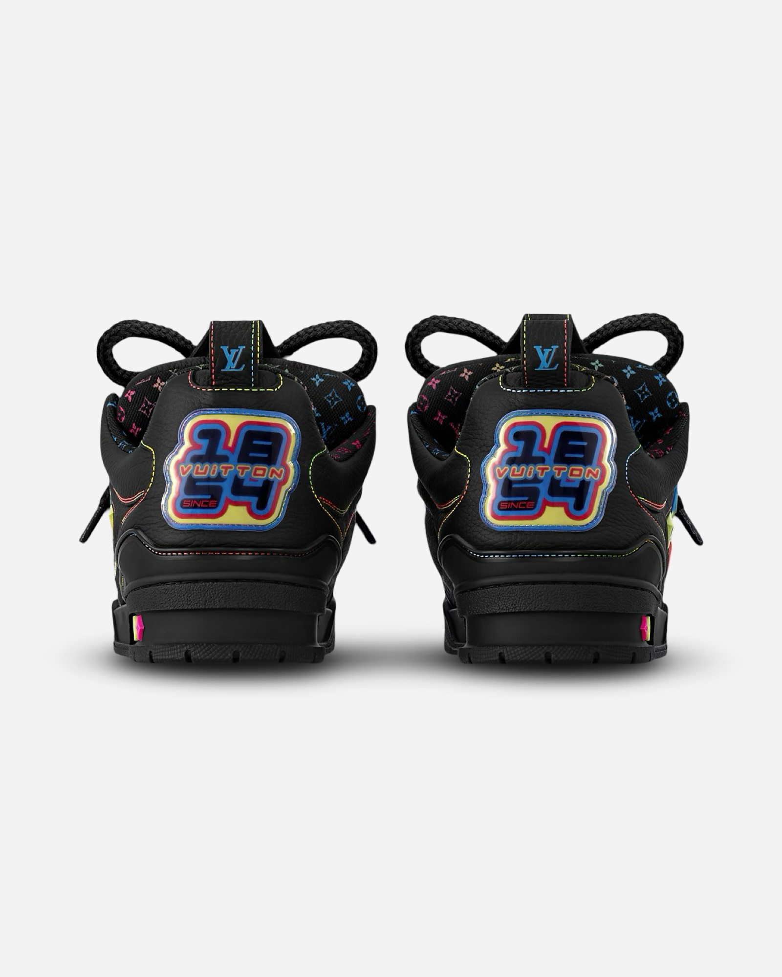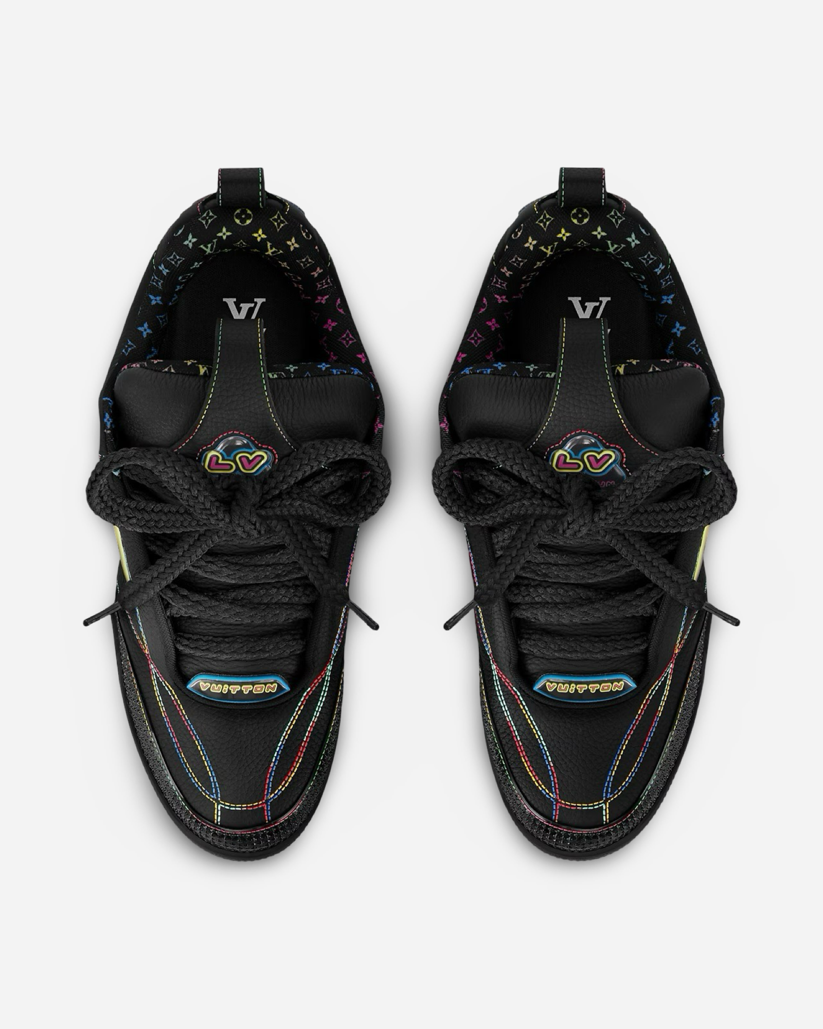 The LV Skate sneaker is revisited in grained calf leather with colorful details, coordinating with the season's Leather Goods and Ready-to-Wear. In particular, the side of the sneaker is embellished with a gradient Monogram Flower. This model, which was inspired by Nineties' skate shoes, also features a padded tongue and collar lined with Mini Monogram fabric.
