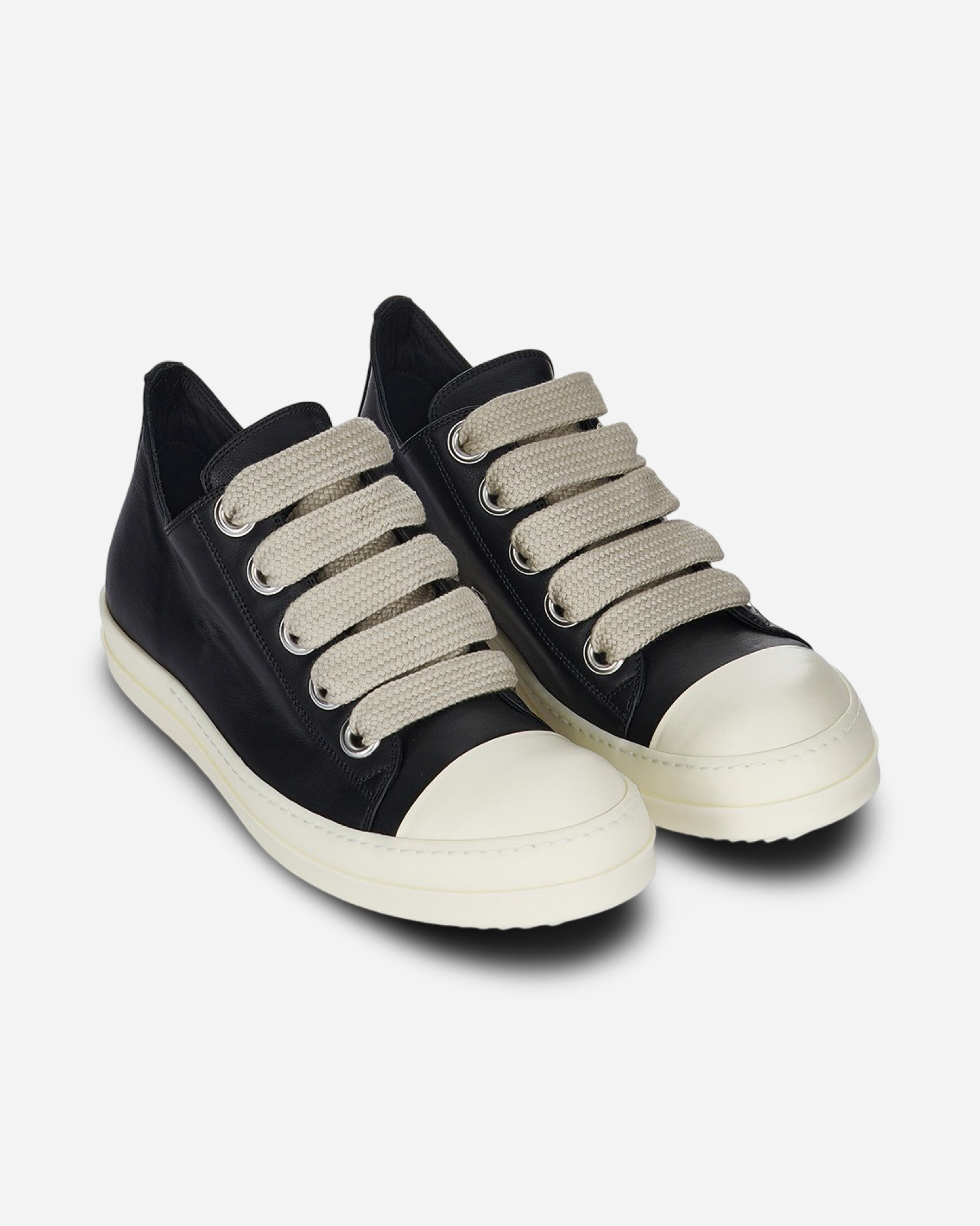 Rick Owens FW24 Porterville Jumbolaced Low Sneaks in Black/Pearl/Milk/Milk Full Grain Calf Leather